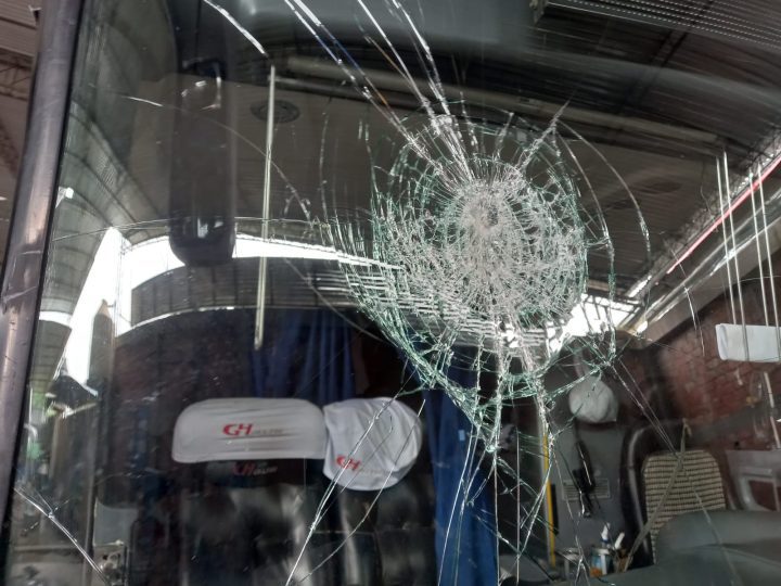 Una pasajera quien estuvo en el terminal de la empresa vio cuando los barristas pretendieron hacerle parar al conductor de vehículo en la esquina del terminal y al no hacerles caso, le lanzaron piedras alcanzándole en el parabrisas de la unidad.