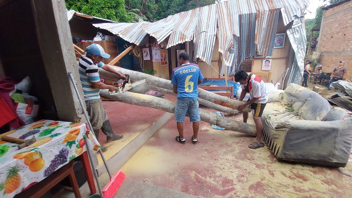 El director del Laboratorio Referencial de Tarapoto, Dr. Heriberto Arévalo Ramírez, junto con un grupo de trabajadores, llevó a cabo una jornada de limpieza y apoyo en la vivienda de Melvin Grandez Ramírez, compañero de trabajo que resultó damnificado tras la caída de un árbol que destruyó su hogar en el sector Santa Eleonor en Tarapoto.