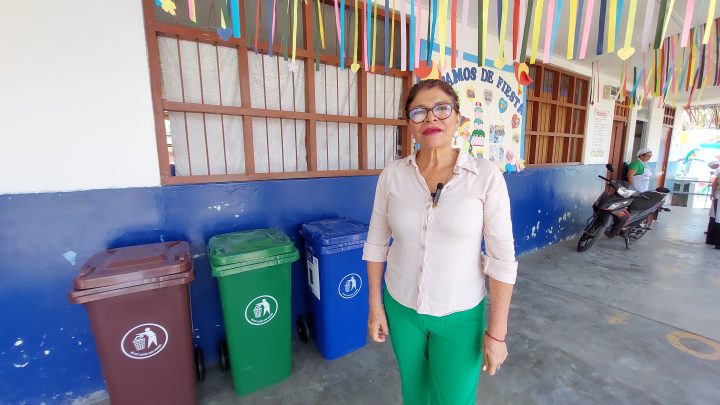Alegría Arévalo, contó que los alumnos están participando de un proyecto “amigos del medio ambiente” desde inicial y primaria viene aprendiendo a seleccionar los residuos de acuerdo del color del tacho de basura, con la finalidad de tomar conciencia para el cuidado del medio ambiente.