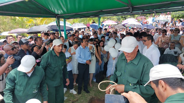 La despedida culminó con el lanzamiento de globos blancos y palomas, en un acto simbólico de paz y despedida al cielo para Luis Felipe Morey Riva.