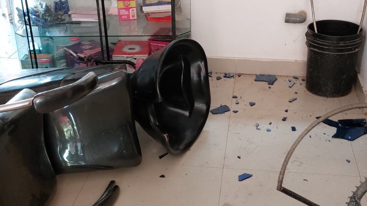 Destrozaron lunas de vidrios, puertas y sillas del salón de belleza, pretendieron tener la tenencia de su padre. Germán Reyes Gonzales (68), anciano que padece de Alzheimer, y que ahora se encuentra al cuidado de su hija Sonia Reyes, después que le trajo a vivir con ella desde hace dos mes y medio por que su actual pareja de Germán no podía solventar los gastos para su tratamiento.