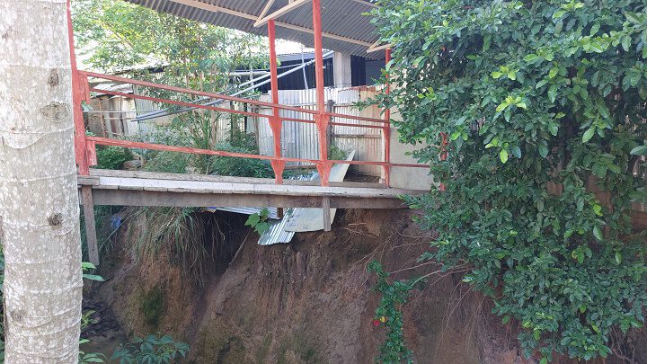 La situación se ha tornado aún más peligrosa tras la caída de un árbol sobre el techo de un puente provisional, obligando a las autoridades del colegio a clausurar esta vía de acceso utilizada por los alumnos.