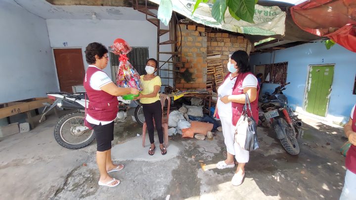 Las integrantes de la asociación manos unidas de Tarapoto, llegaron hasta su cuarto donde vive en alquiler en la primera cuadra del jirón Sinchi Roca, para entregar ayuda económica y una canasta a vísperas por el día de la madre.