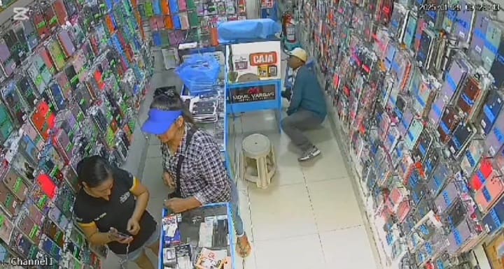 Las cámaras de seguridad de una tienda de celulares, ubicada en la cuadra 2 del jirón Leguía, en el centro de Tarapoto, registraron un robo ocurrido la mañana del miércoles. Dos personas, un hombre y una mujer, ingresaron al establecimiento y, mediante una distracción, sustrajeron 500 soles en efectivo de la caja registradora.